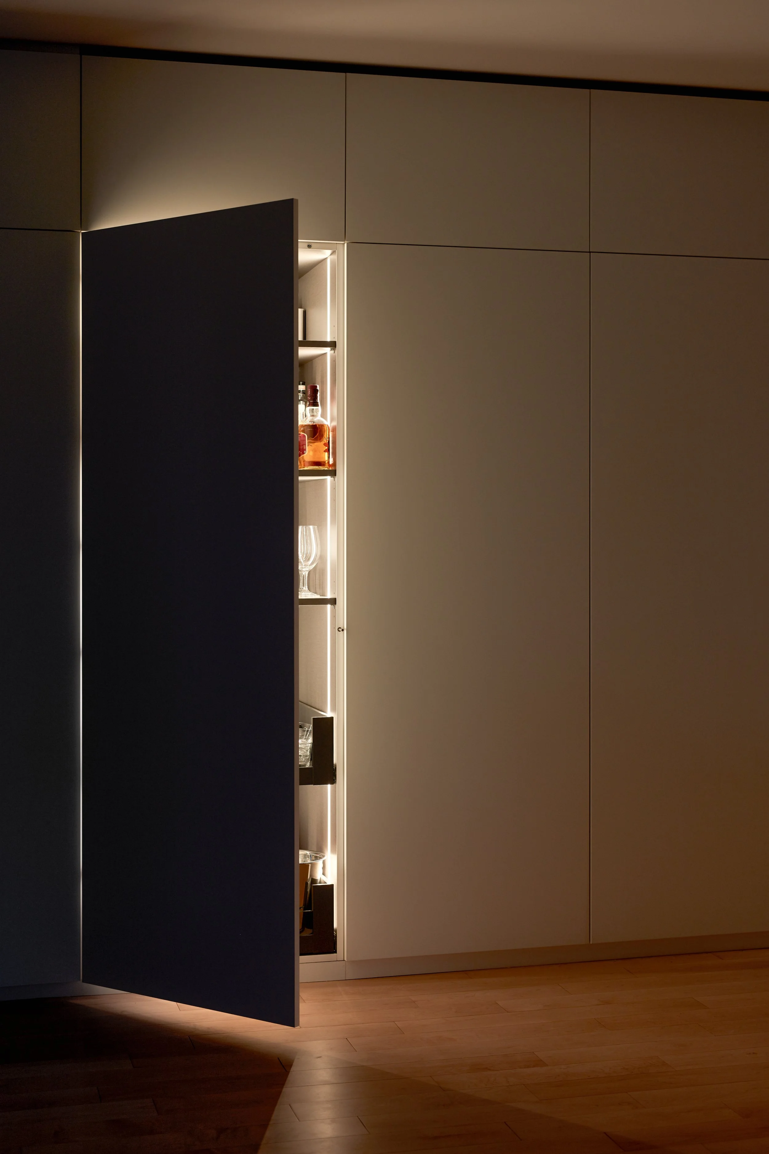 Every Miralis cabinet maximizes usable space with premium drawer systems, customizable interior organizers, and thoughtful ergonomic details that improve daily function. Standard GRASS® Vionaro V8 and BLUM® Legrabox drawer systems offer superior performance, with traditional dovetail wood drawers also available.